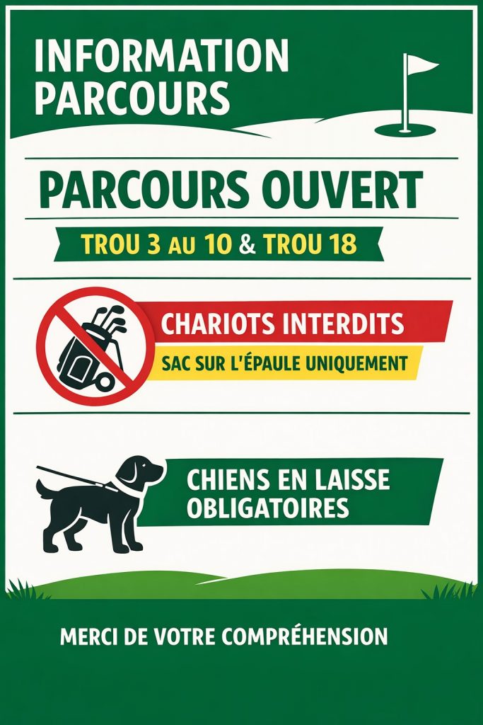 golf avoise>Actualités>Vie du Club>Informations parcours – Mardi 13 et Mercredi 14 janvier 2026
